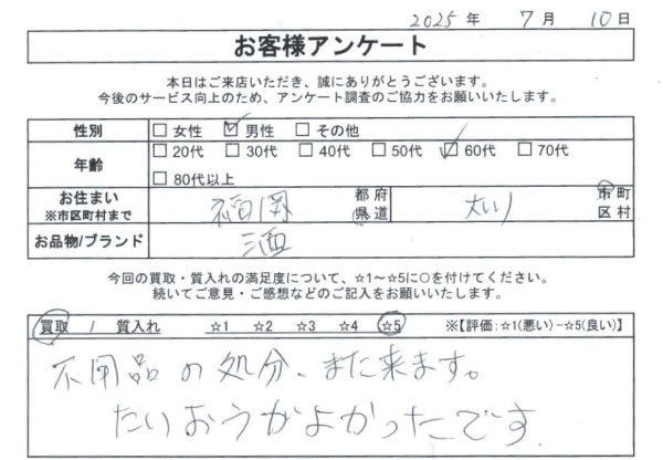 この度は大黒屋 質大橋駅前店をご利用いただきまして誠にありがとうございます。