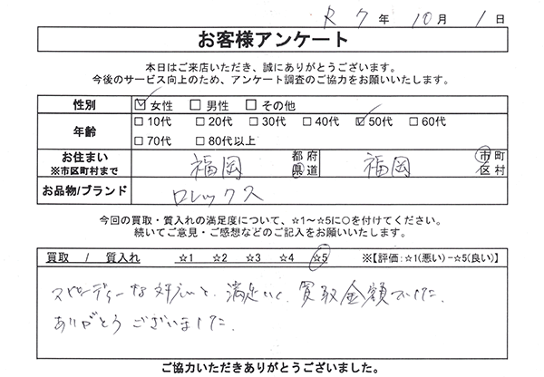 大黒屋ブランド館 福岡店のお客様の声