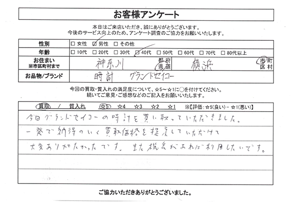 質横浜買取センター マネージャーの瀬尾と申します。