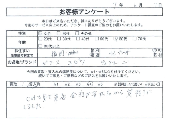 大黒屋 質預かり・買取をご利用のお客様の声