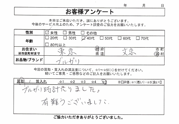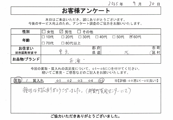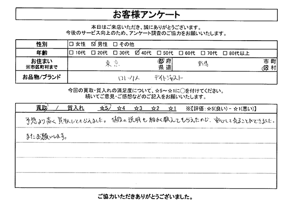 予想より高く買取してもらえました。値段の説明も細かく教えてもらえたので、安心して売ることが出来ました。 またお願いします。