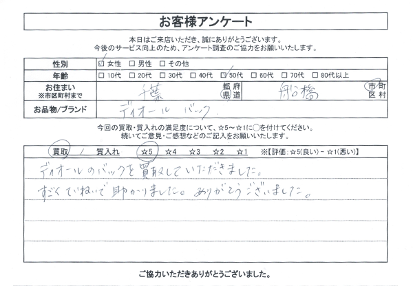 ディオールのバッグを買取していただきました。 すごくていねいで助かりました。ありがとうございました。