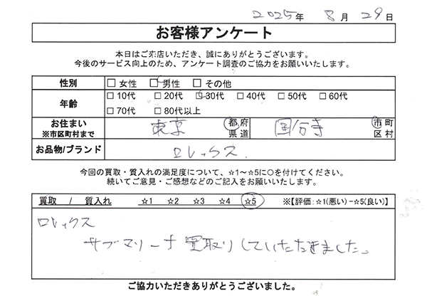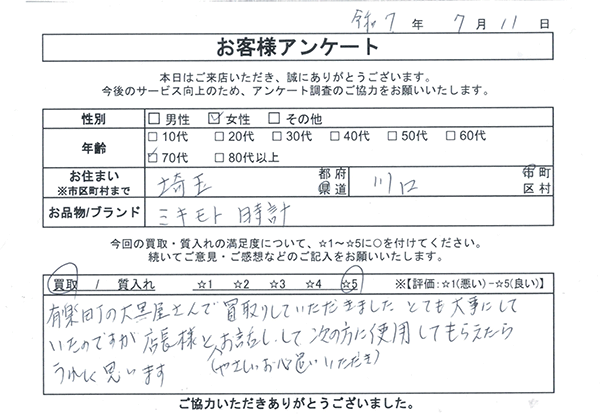 有楽町の大黒屋さんで買取していただきました。とても大事にしていたのですが店長様と(やさしいお心遣いいただき)お話しして次の方に使用していただけたらうれしく思います。