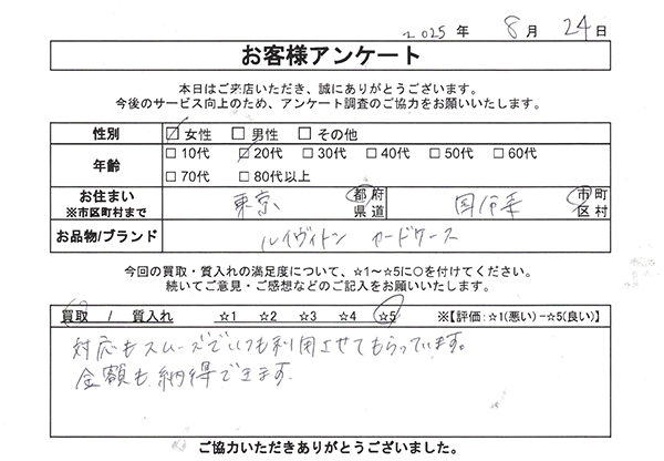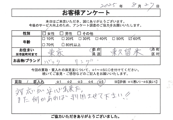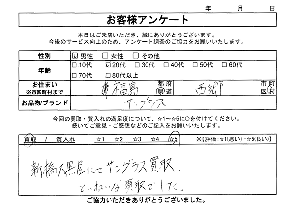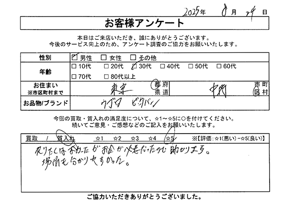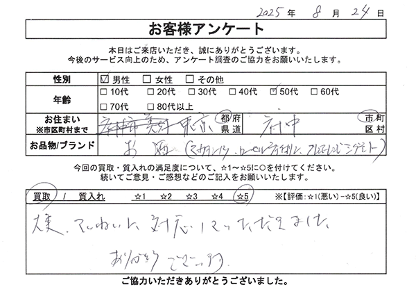 店員さんの接客は丁寧で心配りもあり、対応も早かったです。買取金額も良かったです。