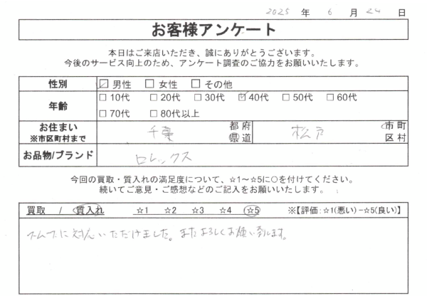 他社さんより、査定も良く、スタッフ(野田さん)の接客も良く 気持ちの良い取り引きが出来ました。 また機会があればお願いします。