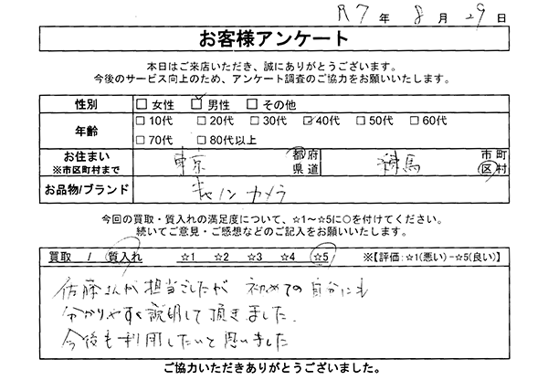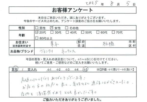 高値つけてくださりありがとうございます! お店の方の対応も良く、気持ちよく過ごすことができました。 店内も清潔感があり とても良かったです。
