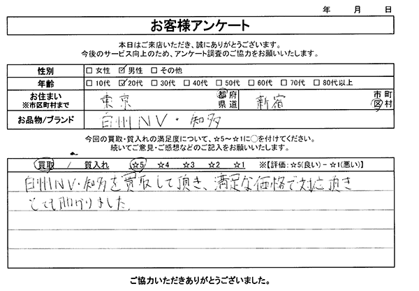 白州NV・知多を買取して頂き、満足な価格で対応頂きとても助かりました。
