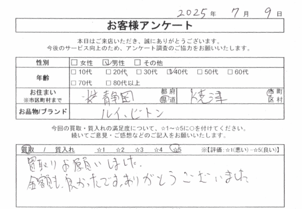 親切に説明していただいたので安心してお買取をおまかせできました。 ありがとうございました。