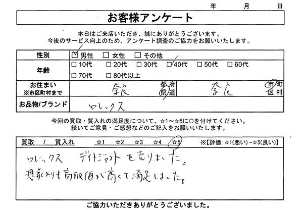 ロレックス デイトジャストを売りました。 想像よりも高取値が高くて満足しました。