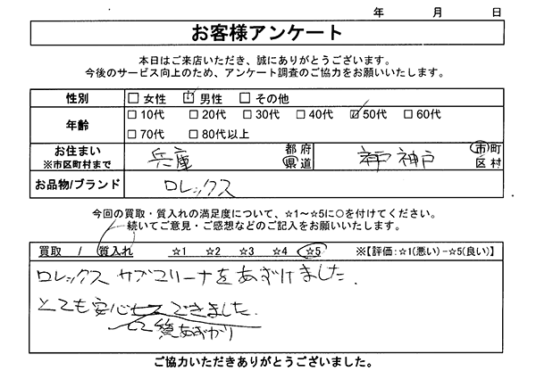 ロレックス サブマリーナをあずけました。 とても安心して質あずかりできました。