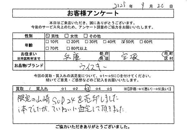限定の山崎SOD24を売却しました 1本でしたが、ていねいに査定して頂きました。