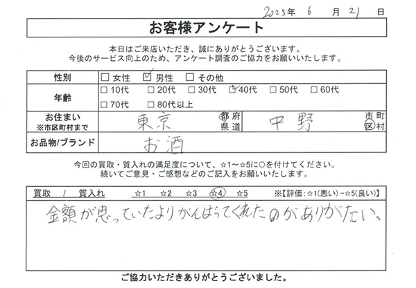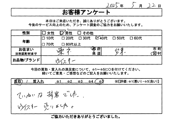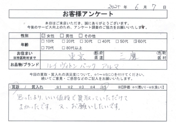 思ったより、いい値段で買取っていただけてよかったです。又、お願いしたいです。