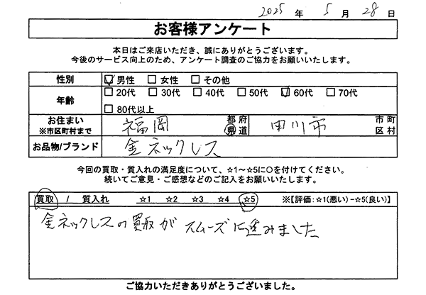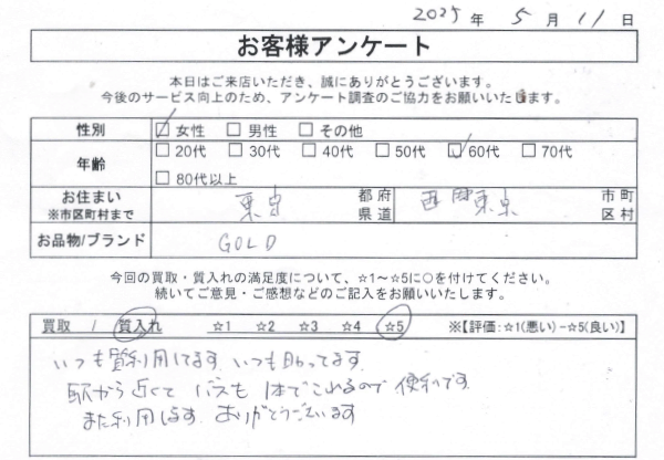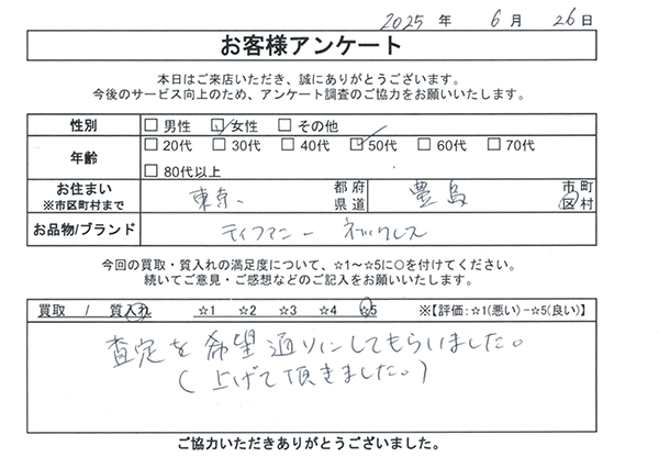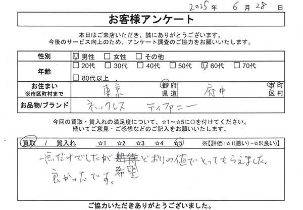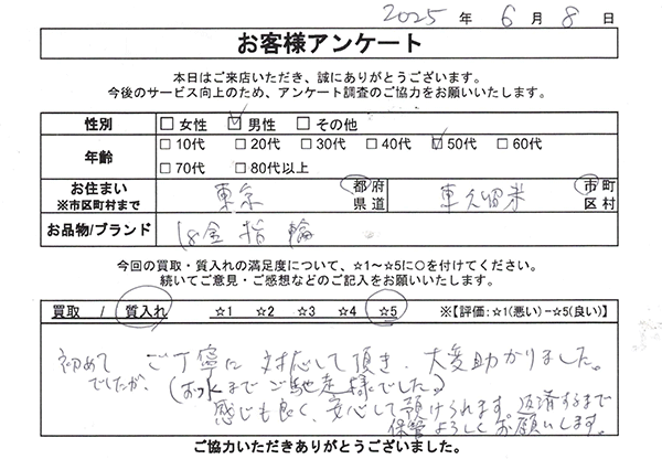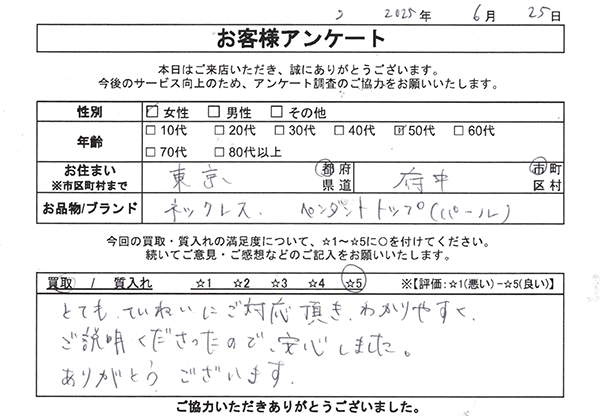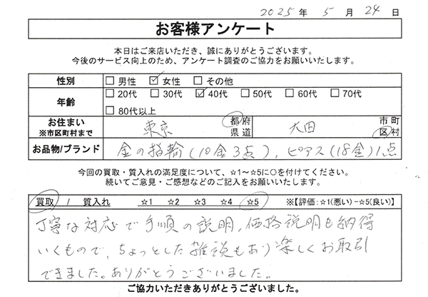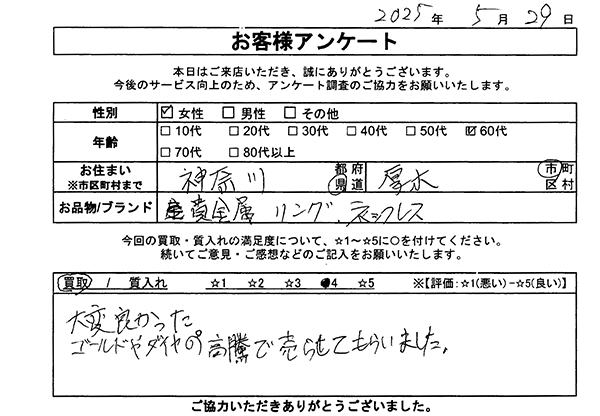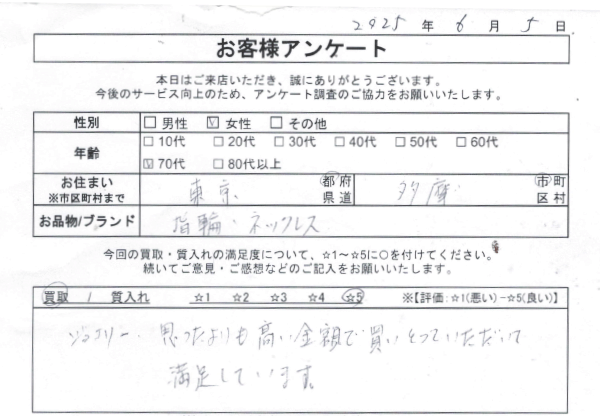 ジュエリー 思ったよりも高い金額で買いとっていただいて満足しています。