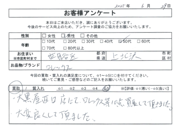 大黒屋西口店にてロレックス等10点買取して頂きました。 大変良くして頂ました。