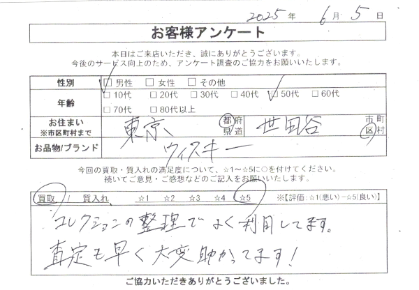 査定を目の前で対応していただき安心して売却する事ができました。 レートも高いのでオススメしておきます。またお願いします!