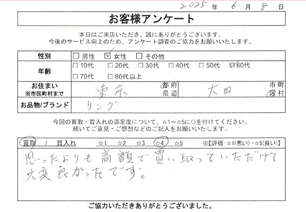 本日御徒町の大黒屋さんで買取りして頂きました。 満足しました。ありがとうございました。