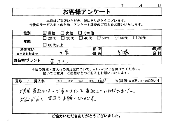 大黒屋 買取センターで金のコインを買取していただきました。 対応が良く 次回もお願いしたいです。