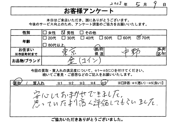 安心しておまかせできました。 思っていたより高く評価してもらいました。