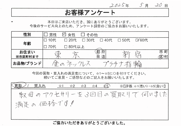 本日御徒町大黒屋さんで貴金属を買取ってもらいましてありがとうございます。