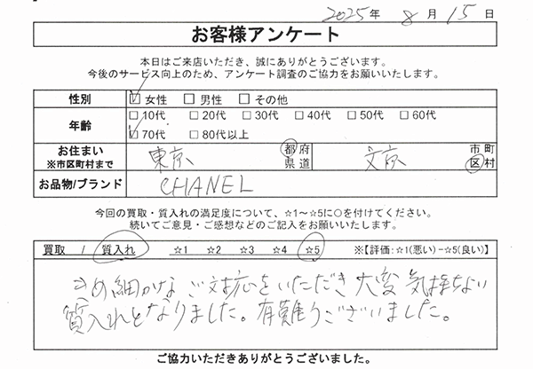 きめ細かなご対応をいただき大変気持ちよい質入れとなりました。有難うございました。