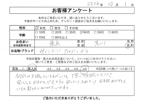 大変親切で一番高い金額を提示して頂いてありがとうございました。時間もかからずスムーズでした。又何かありましたら、宜しくお願い致します。