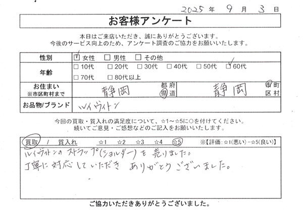 ヴィトン買い取って頂きました。 良心的対応でした。 ありがとうございました。