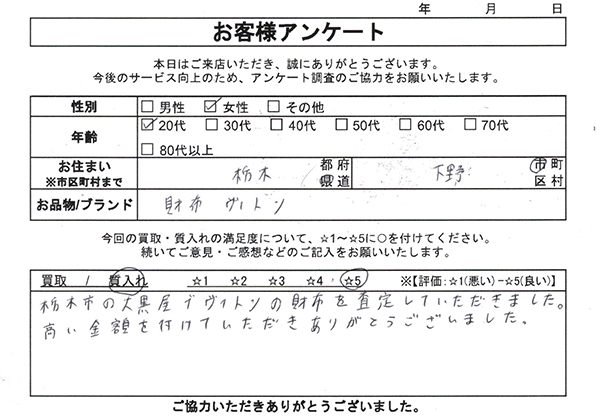 栃木市の大黒屋でヴィトンの財布を査定していただきました。 高い金額を付けていただきありがとうございました。