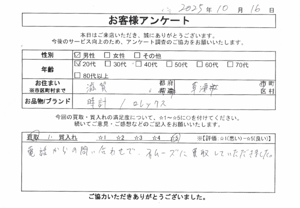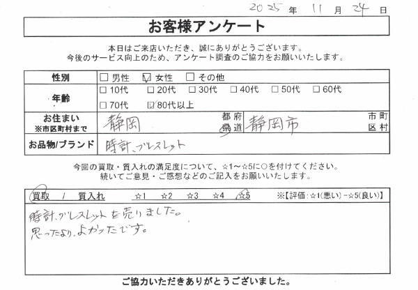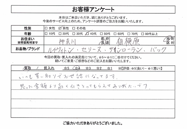 予想より高く買取してもらえました。値段の説明も細かく教えてもらえたので、安心して売ることが出来ました。 またお願いします。
