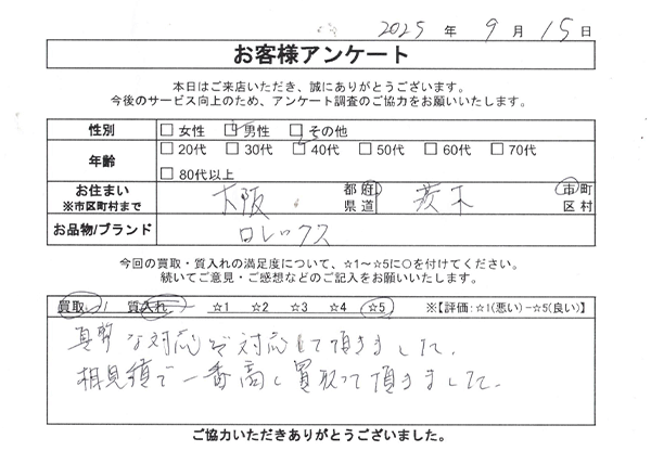 説明もしっかりしていただき、自分が思っていたよりも大きな金額で買い取りしていただき大変満足です。 今後も何かあればお願いしたいと思います。